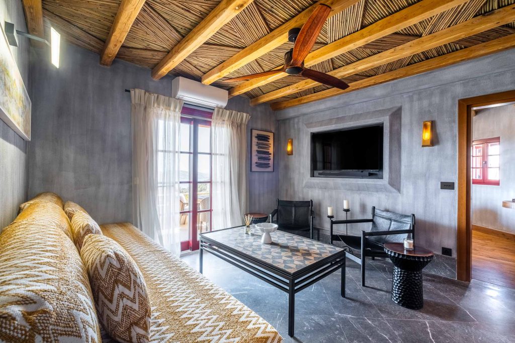 Amorgianos Villa offers structured elegance shaped by stone, sea orientation, and privacy. Whether reserved as a full private residence or selected as individual accommodations, the property delivers calm surroundings, proportion, and architectural clarity.